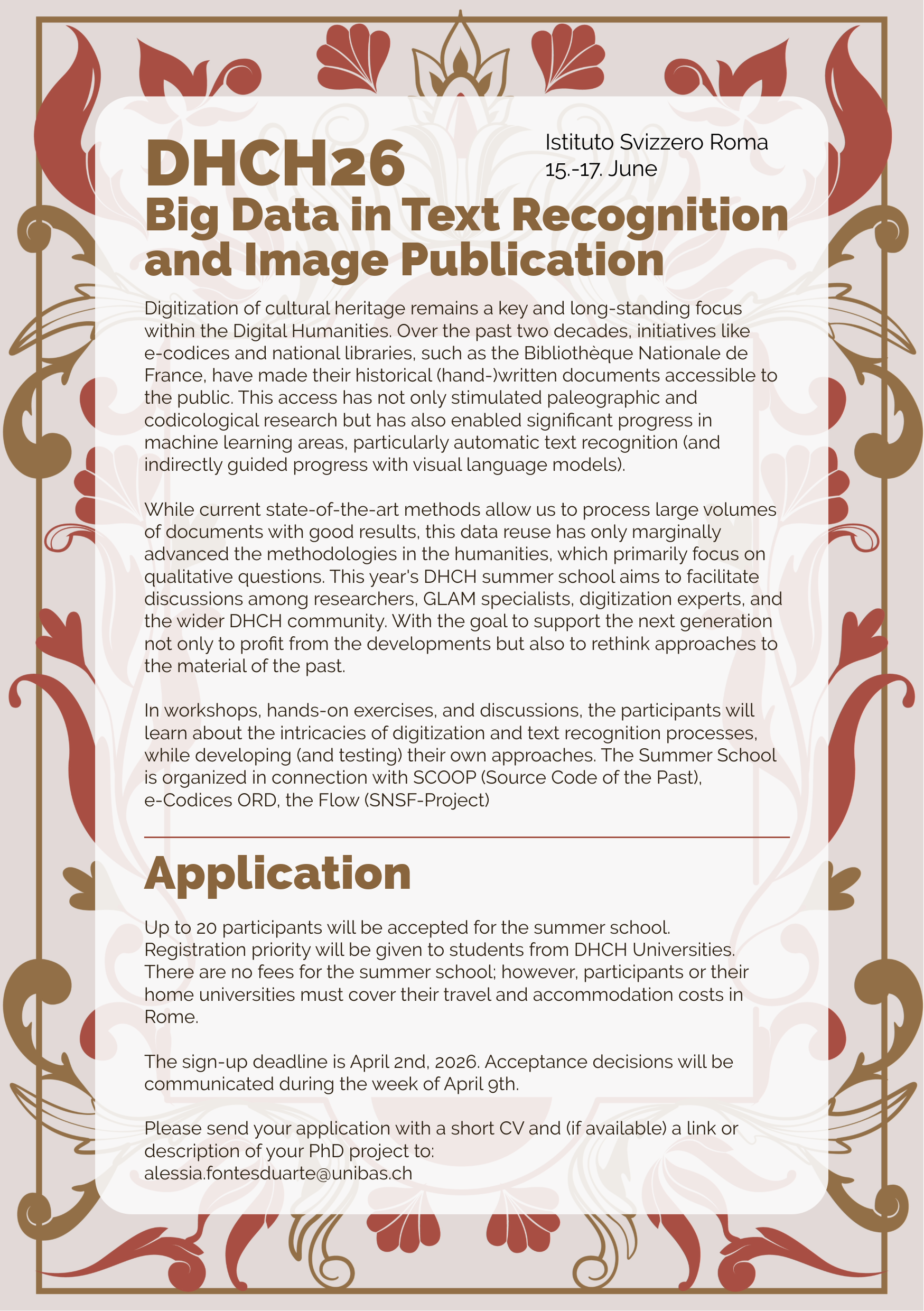 The DHCH26 focuses on text recognition and image publication.